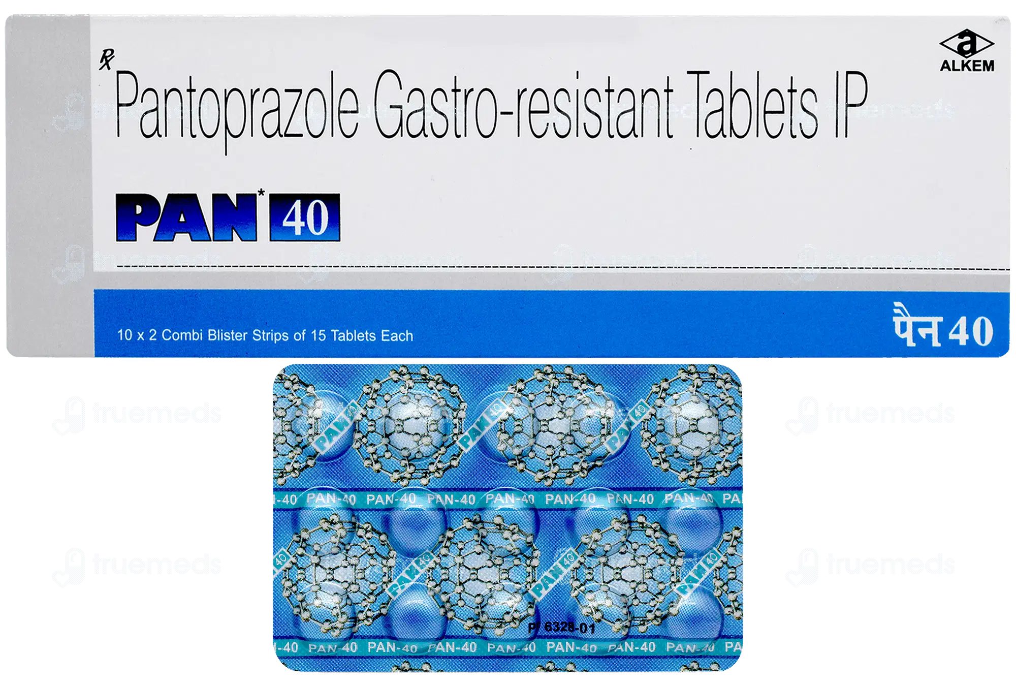PAN 40 Tablet contains Pantoprazole 40 mg, a proton pump inhibitor (PPI) used to manage acid-related disorders in the stomach and intestines. It is commonly prescribed to relieve conditions such as acid reflux, heartburn, peptic ulcers, and conditions involving excessive acid production like Zollinger-Ellison syndrome. This medicine works by reducing the amount of acid produced in the stomach, which not only helps relieve symptoms like burning sensation or discomfort but also promotes healing of ulcers and prevents their recurrence. PAN 40 is also used as a preventive treatment for people taking long-term non-steroidal anti-inflammatory drugs (NSAIDs), which can irritate the stomach lining. It is effective in treating gastroesophageal reflux disease (GERD), heartburn, and in protecting the stomach lining from damage caused by acid. The tablet should be taken as advised by the physician, usually on an empty stomach in the morning. It must be swallowed whole with a glass of water without chewing or crushing. Most users tolerate PAN 40 well, but some may experience side effects such as nausea, headache, dizziness, bloating, or abdominal pain. These symptoms are generally mild and temporary. Inform your doctor if side effects persist or become bothersome. Long-term use may increase the risk of bone fractures or vitamin deficiencies, so supplementation and regular monitoring might be recommended. Inform your doctor if you have liver issues, low magnesium levels, or a history of osteoporosis before starting this medicine. Use in pregnancy and breastfeeding should only be done under medical supervision. PAN 40 Tablet may cause dizziness, so caution is advised while driving or operating machinery. If a dose is missed, take it as soon as remembered, but skip it if it’s almost time for the next dose. Do not double up on doses.