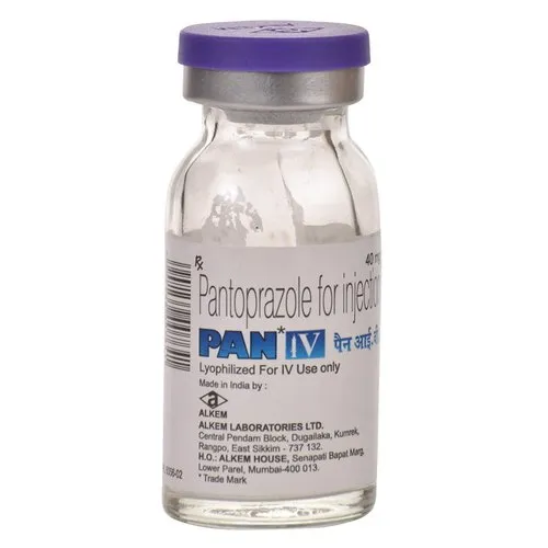 PAN IV Injection is a proton pump inhibitor (PPI) used to lower the amount of acid produced in the stomach. It is prescribed for acid-related conditions such as acid reflux, peptic ulcers, and Zollinger-Ellison syndrome, helping to relieve symptoms like heartburn, indigestion, and stomach discomfort while promoting healing.