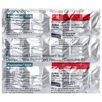 Pantodac DSR Capsule is a trusted prescription medicine formulated to treat gastroesophageal reflux disease, chronic acidity, gastritis, and indigestion. It combines two active ingredients, Domperidone and Pantoprazole, that work together to regulate acid secretion and enhance stomach motility. This powerful dual-action mechanism provides fast and long-lasting relief from acidity, heartburn, and bloating while improving digestion and reducing stomach discomfort. Pantodac DSR Capsule helps restore digestive balance by reducing excess acid formation and promoting smoother movement of food through the digestive tract. Taken on an empty stomach as directed by your doctor, it offers protection from acid-related symptoms and supports a healthier gastrointestinal system. With consistent use and proper dietary habits, it helps prevent recurrence of acidity, ensuring lasting comfort and improved quality of life.