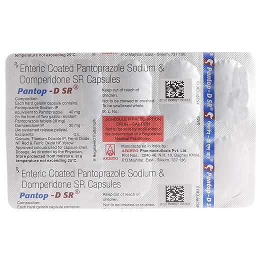 Pantop DSR is a combination medicine used to manage conditions related to excess stomach acid. It is commonly prescribed for treating symptoms like heartburn, acid reflux, indigestion, and stomach ulcers. The tablet helps reduce the production of acid in the stomach, providing relief from burning sensations, discomfort, and irritation.