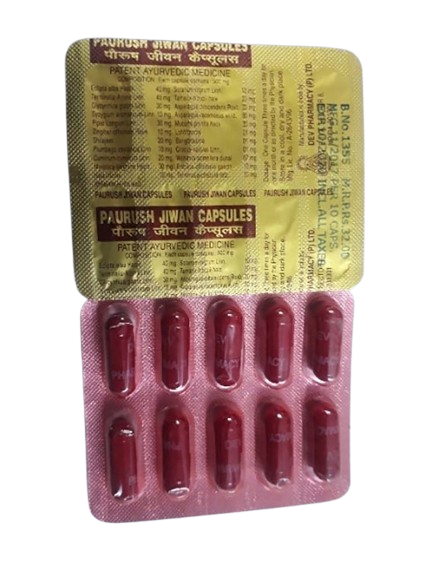 Dev Pharmacy’s Paurush Jiwan Capsule is a natural vitality-enhancing supplement designed for both men and women. It is formulated to boost energy levels, strengthen immunity, and improve overall health and metabolism. This Ayurvedic capsule aids in eliminating harmful toxins from the body that contribute to weakness, fatigue, and lethargy. It promotes healthy liver function and detoxification, while also supporting regular bowel movements and providing relief from constipation and irritable bowel syndrome. The natural blend of herbs in Paurush Jiwan Capsule works synergistically to enhance physical and mental wellness, improve digestion, and restore vitality. It is ideal for individuals experiencing weakness, low energy, or general health issues caused by stress, pollution, or lifestyle factors. Regular use, as directed by a healthcare professional, ensures optimum health benefits.