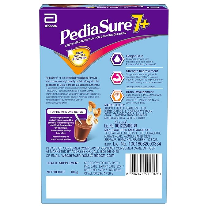 PediaSure 7+ is safe for children over 5 years when used as a supplement to a balanced diet. It should not replace regular meals or be used as the only source of nutrition. Store in a cool, dry place and use within 3 weeks of opening. Always consult a healthcare provider before introducing any new supplement to your child’s diet.