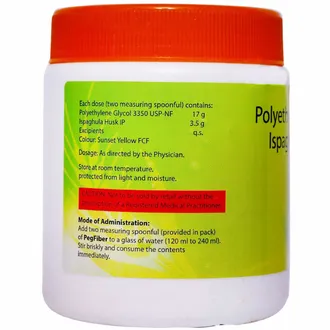 Pegfiber Polyethylene Glycol 3350 with Ispaghula Powder is designed to help relieve constipation. It works by drawing water into the stool and increasing its bulk through natural fiber, which softens stools and promotes smoother bowel movements. Regular use supports healthy digestive function and helps restore consistent bowel habits.