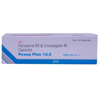 Pexep Plus 12.5 Capsule IR combines paroxetine and clonazepam. Paroxetine is a selective serotonin reuptake inhibitor (SSRI) that raises serotonin levels in the brain, improving mood and emotional balance. Clonazepam is a benzodiazepine that enhances the action of GABA, a chemical messenger that reduces overactivity of nerve cells, leading to a calming effect.