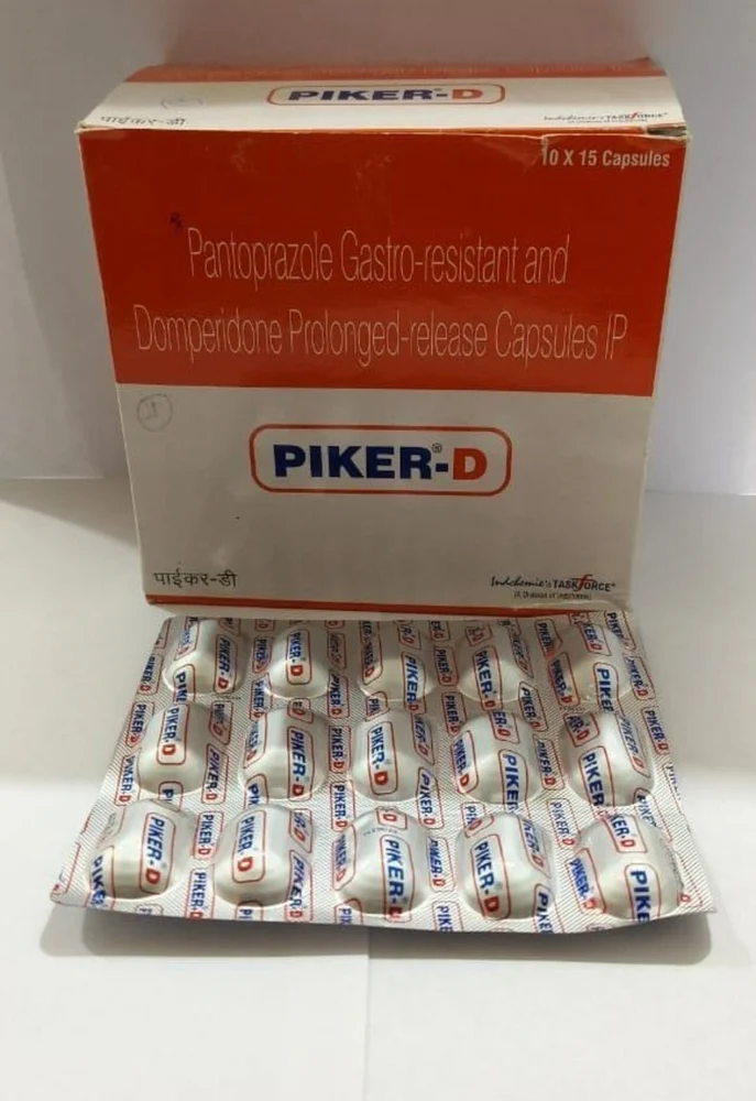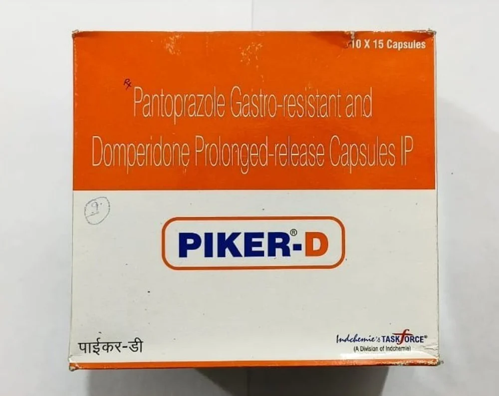 Piker-D Capsule PR is a prescription medicine designed to manage conditions like acid reflux (gastroesophageal reflux disease), gastritis, and indigestion (dyspepsia). By lowering the acid levels in the stomach, it helps ease discomforts such as heartburn, irritation, and stomach pain.