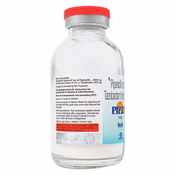 Pipzo 4.5 g Injection is a combination antibiotic used to treat a wide range of bacterial infections. It works by eliminating the bacteria responsible for the infection.