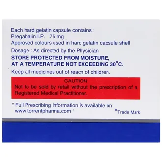 Pregaba 75 Capsule is a prescription medicine used to relieve neuropathic pain caused by nerve damage due to conditions such as diabetes, shingles, spinal cord injury, or other medical conditions. It is also effective in treating fibromyalgia, certain types of seizures, and may be prescribed for anxiety disorder if other treatments are unsuitable. Pregaba 75 Capsule belongs to the antiepileptic group of medicines and works by modulating nerve signals and reducing abnormal electrical activity in the brain.
