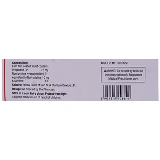 PREgabA NT 75mg/10mg Tablet is a combination medicine used to manage neuropathic pain, a chronic condition caused by nerve damage. It works by blocking pain signals from reaching the brain and improving overall nerve function, helping to relieve pain and associated symptoms like mood changes, sleep disturbances, and fatigue.