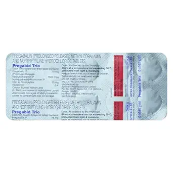 Pregabid Trio 75mg/10mg/1500mcg Tablet is a combination of three medicines commonly prescribed for the management of neuropathic pain. It works by reducing pain signals sent by damaged nerves, helping to control symptoms such as burning, tingling, and sharp pain. This medicine also helps improve mood and supports nerve health by protecting and repairing nerve fibers.