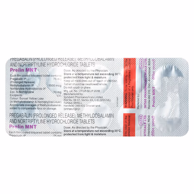 Prelin MNT Tablet is a combination medicine specially formulated to manage neuropathic pain, a chronic condition caused by nerve damage from diabetes, shingles, or spinal cord injuries. This medicine works by calming overactive nerve cells, reducing pain signals to the brain, and supporting nerve health. It also increases the levels of chemical messengers in the brain, helping to improve mood and emotional well-being. Regular use of Prelin MNT Tablet enhances sleep, reduces tiredness, and improves overall quality of life. The medicine should be taken at the same time each day, preferably with or without food, and the complete course should be followed as advised by your doctor.