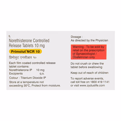 Primolut-N 10mg Tablet CR is a hormonal medicine used to treat menstrual disorders such as irregular, heavy, or painful periods, premenstrual syndrome (PMS), and endometriosis. It contains a man-made form of the female hormone progesterone, which plays an essential role in regulating the menstrual cycle and maintaining hormonal balance in women. By restoring progesterone levels, this medicine helps reduce pain, control excessive bleeding, and improve overall menstrual health.