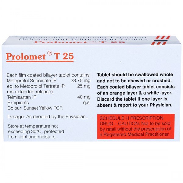 Prolomet T 25 Tablet ER is a combination medicine used to manage high blood pressure (hypertension). By lowering blood pressure, it helps prevent heart attacks, strokes, and kidney problems. Early use after a heart attack can also improve survival chances.