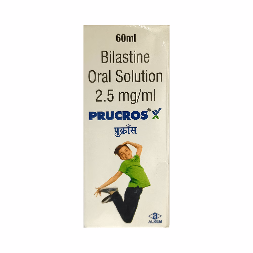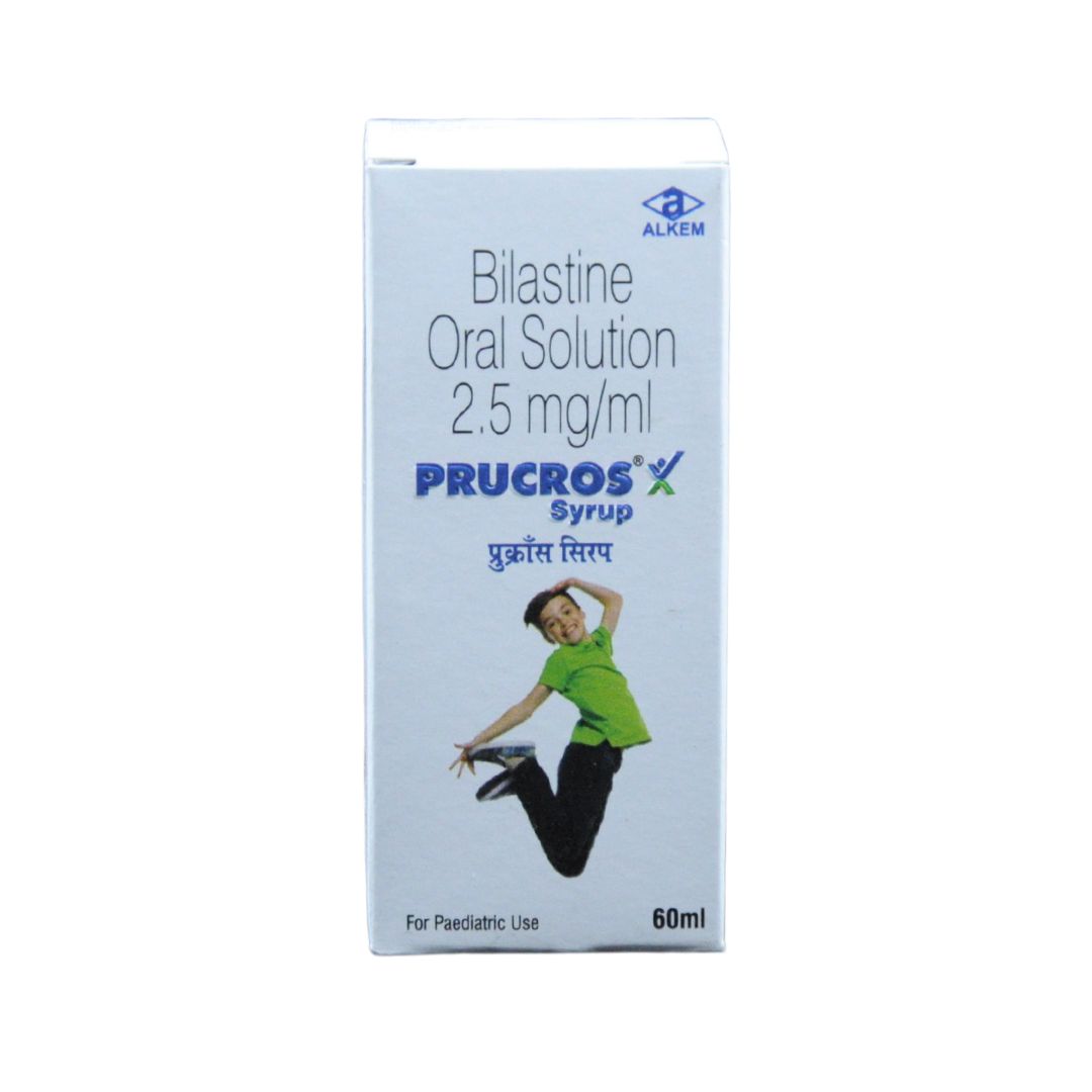 Prucros Oral Solution is an anti-allergic medicine used in children to manage symptoms of allergies such as hay fever, hives, allergic conjunctivitis (red, itchy eyes), and the common cold. It helps reduce sneezing, watery eyes, runny nose, itching, and other discomforts caused by allergic reactions.