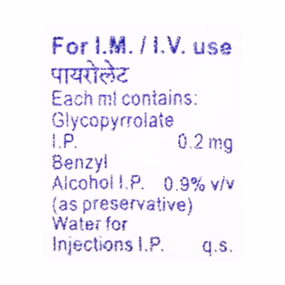 Pyrolate Injection is an anticholinergic medication used before or during surgery to reduce secretions in the mouth, throat, or stomach. It also helps reverse certain side effects caused by anesthetic drugs and is used to manage peptic ulcers when oral medicines cannot be taken.