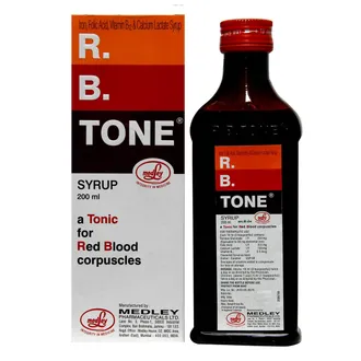 R B Tone Syrup is a nutritional health supplement designed to restore iron levels and improve overall vitality. It is enriched with iron, folic acid, vitamin B complex and other essential nutrients that play a vital role in blood formation and oxygen transport. This syrup helps in correcting iron deficiency anemia and provides relief from fatigue, weakness, dizziness and poor concentration. It is especially beneficial for children, women during pregnancy, lactating mothers, and individuals recovering from surgery or illness. The liquid form makes it easy to swallow and suitable for people who find difficulty in taking tablets. R B Tone Syrup also helps in enhancing appetite, improving digestion, boosting immunity, and promoting healthy skin and hair. With consistent use under medical guidance, it contributes to faster recovery, better stamina, improved energy levels, and overall wellness for both children and adults.