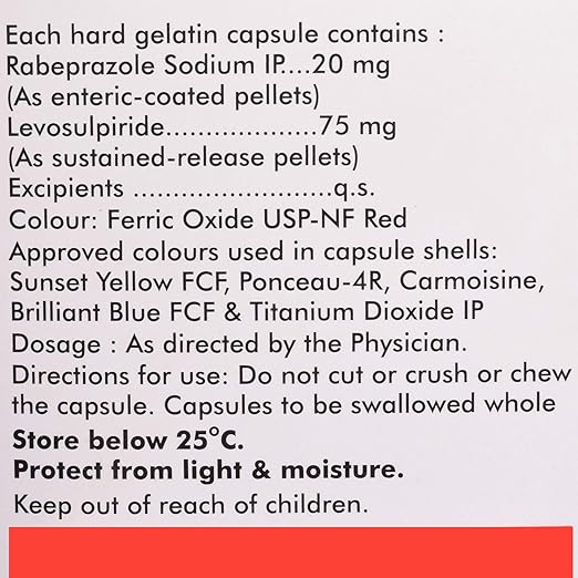Levosulpiride acts as a prokinetic, enhancing movement in the stomach and intestines and reducing acid reflux. Rabeprazole is a proton pump inhibitor that decreases stomach acid, alleviating indigestion and aiding in ulcer healing.