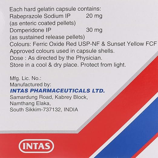 Rabium-DSR contains two active ingredients, Domperidone and Rabeprazole. Domperidone improves movement in the stomach and intestines, allowing food to pass smoothly. Rabeprazole reduces stomach acid production, providing relief from symptoms like heartburn and indigestion.