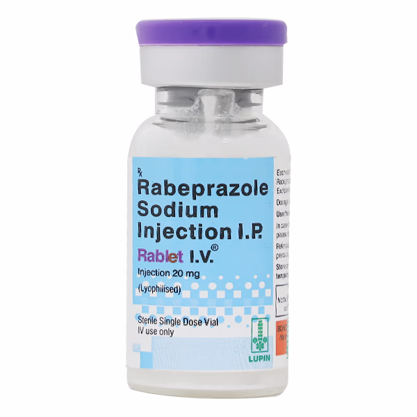 Rablet IV Injection contains Rabeprazole, a proton pump inhibitor (PPI). It is prescribed for the short-term treatment of acid-related conditions in patients who cannot take oral medication. It is used in hospitals to manage gastroesophageal reflux disease (GERD), severe acidity, stomach ulcers, and Zollinger-Ellison syndrome. By reducing excess stomach acid, it provides quick relief and promotes healing of the stomach and esophagus.