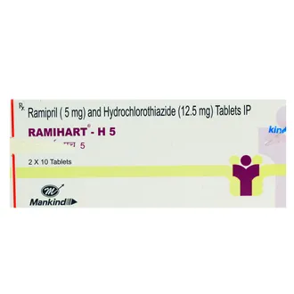 Ramihart-H 5 Tablet is a combination medicine used to treat hypertension (high blood pressure). It helps when a single medication is not enough to control blood pressure and reduces the risk of heart attack and stroke.