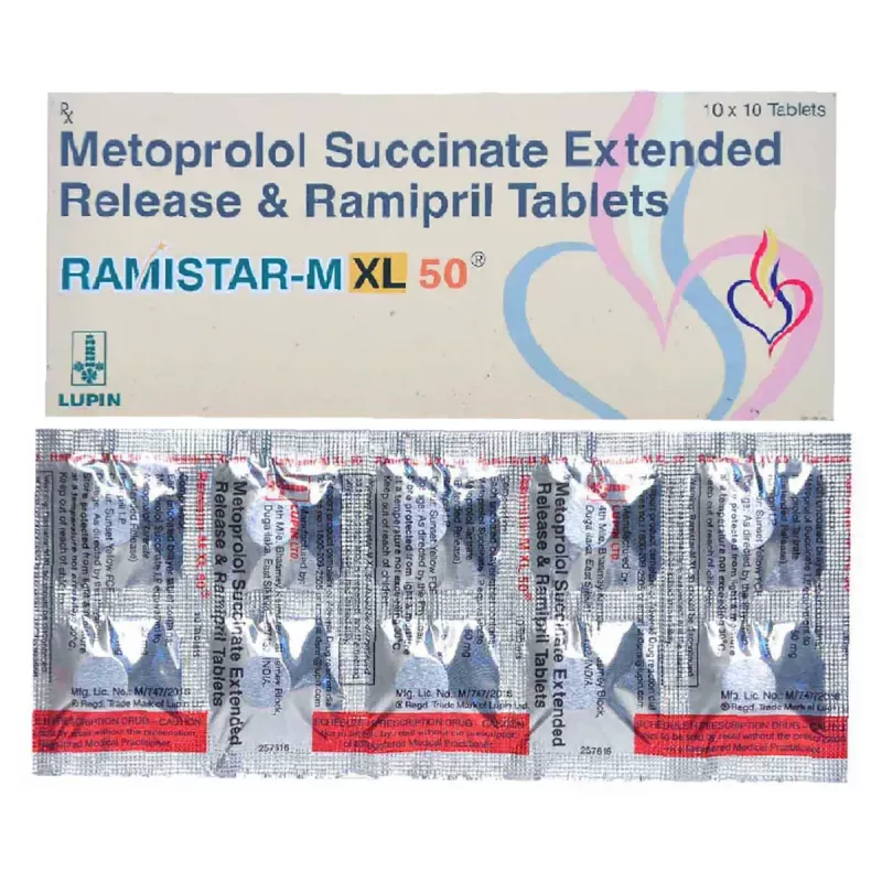 Ramistar-M XL 50 Tablet is used to treat high blood pressure and support heart health. By controlling blood pressure, it helps prevent heart attacks, strokes, and other heart-related complications. Early treatment can improve survival in patients who have suffered a heart attack.