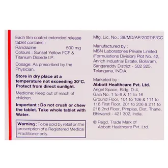 Ranogard Tablet ER is a medicine used for the management of chronic angina, a type of chest pain that happens when the heart does not get enough oxygen-rich blood. It works differently from many other angina medicines by improving how the heart uses energy, helping it function efficiently without increasing heart rate or blood pressure.