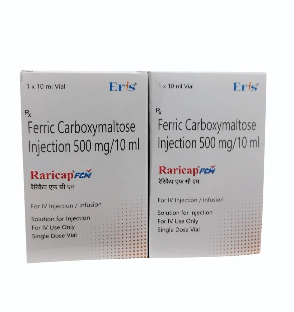 Raricap FCM 1000mg Injection is an iron-based medication used to treat iron deficiency and iron-deficiency anemia, particularly when oral iron supplements are not effective or cannot be tolerated. It provides the body with a highly bioavailable form of iron, which is essential for the production of healthy red blood cells and the transport of oxygen throughout the body.