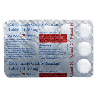 Rekool 20 Tablet contains Rabeprazole, a proton pump inhibitor (PPI). It works by lowering the amount of acid made in the stomach, giving relief from acidity-related symptoms and promoting ulcer healing.