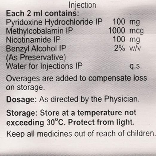 • Methylcobalamin (Vitamin B12): Accelerates nerve repair and regeneration, improves conduction of nerve impulses, and supports the production of red blood cells.