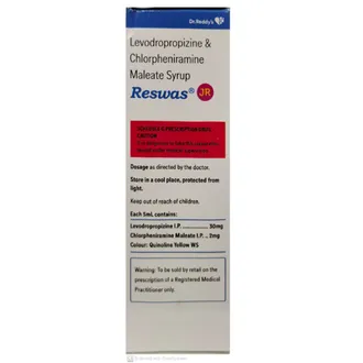 Reswas JR Syrup is used to manage dry cough and related allergic symptoms. It works by calming irritation in the throat and reducing coughing caused by allergens. It also helps relieve sneezing, runny nose, itching, and watery eyes.