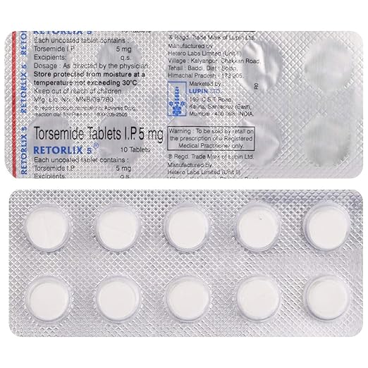 Retorlix 5 Tablet contains torasemide 5 mg, which is a diuretic (“water pill”) that helps your body remove excess water and salt.