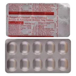 Revelol-AM 50/5 Tablet PR is a combination medicine used to manage high blood pressure and heart-related conditions. It helps regulate heart rate and is also prescribed for chest pain caused by heart issues (angina), irregular heart rhythms, and long-term heart failure.