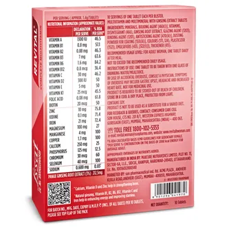 Revital Woman Tablet combines multivitamins, minerals, and natural ingredients that restore nutritional balance in the body. Vitamins improve energy and immunity, calcium supports bone health, and antioxidants protect against cell damage. Together, they help women stay active, healthy, and energetic.