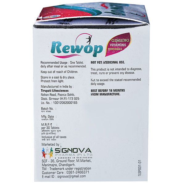 Rewop Tablet helps restore essential nutrients in the body. It supports maintaining balanced levels of vitamins and minerals, promotes healthy bones and joints, and contributes to overall health and wellness.