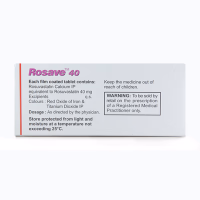 ROsave 40 Tablet is a medicine used to lower high cholesterol and triglyceride levels. It helps reduce the risk of heart disease, heart attack, and stroke by keeping the arteries clear of harmful cholesterol buildup. It belongs to the group of medicines called statins.