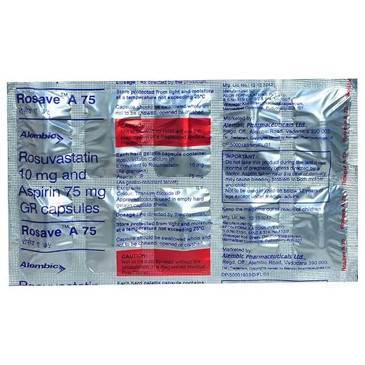 Rosave A 75 Capsule is a combination medicine prescribed for the prevention of heart attack, stroke, and complications related to blood vessel blockages. It works by controlling cholesterol levels and preventing the formation of harmful blood clots, thereby improving overall heart and vascular health.