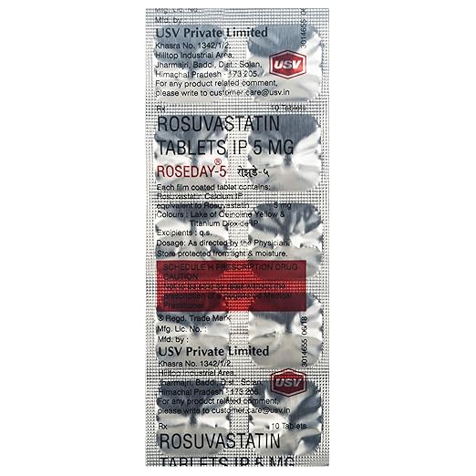 Roseday 5 Tablet contains Rosuvastatin (5 mg), a statin that helps lower “bad cholesterol” (LDL) and triglycerides while increasing “good cholesterol” (HDL). By keeping arteries clear, it supports cardiovascular health and prevents heart attacks or strokes.