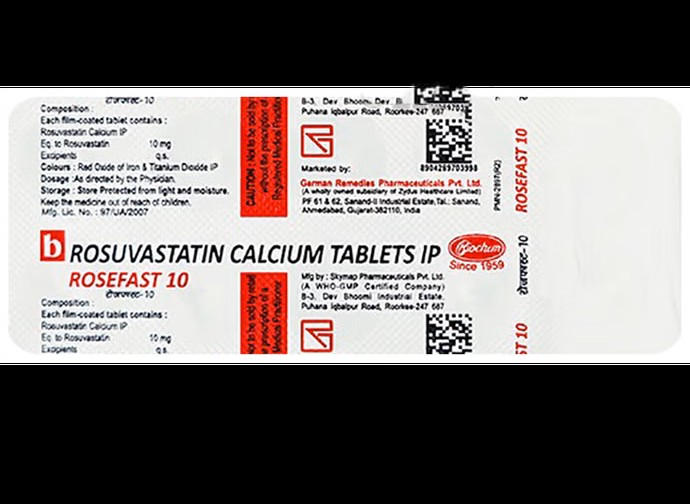 Rosefast 10 Tablet belongs to a class of medicines known as statins. It is commonly used to lower high cholesterol and triglyceride levels, helping to reduce the risk of heart disease. Cholesterol is a fatty substance that can accumulate in blood vessels, leading to narrowing and increasing the chances of heart attacks or strokes.