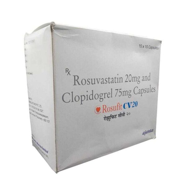 Rosufit CV 20 Capsule is a combination medication used primarily to reduce the risk of cardiovascular events such as heart attacks, strokes, and angina. It helps improve heart health by lowering levels of bad cholesterol (LDL) and triglycerides, while also preventing the formation of blood clots. This dual action supports smoother blood flow and reduces the likelihood of blockages in arteries.