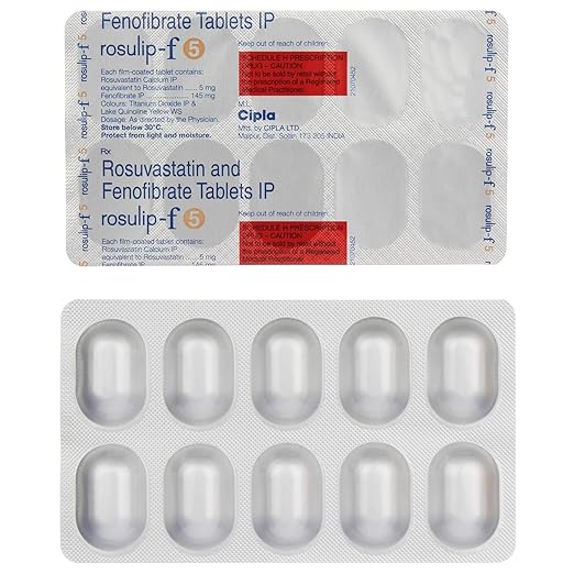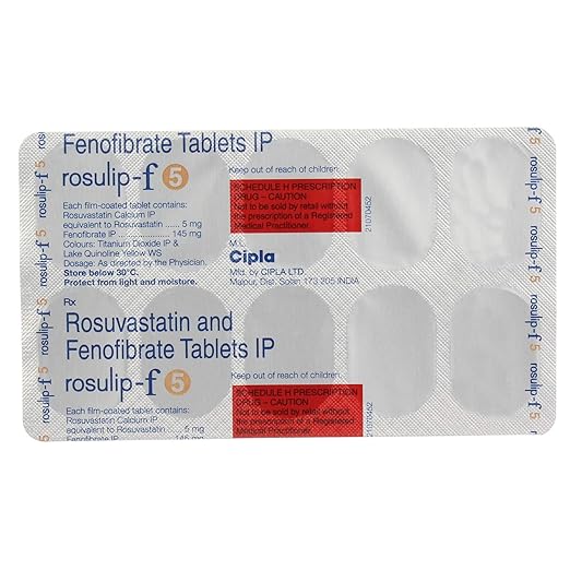 Rosulip-F 5 Tablet is a combination medicine used to manage cholesterol and triglyceride levels. It helps lower bad cholesterol (LDL) and triglycerides while increasing good cholesterol (HDL), supporting heart health and reducing the risk of cardiovascular complications.