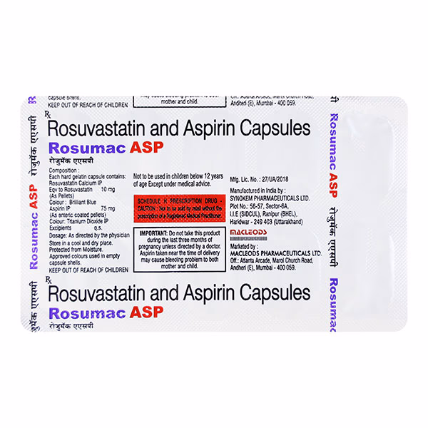 Rosumac ASP Capsule is a carefully formulated supplement designed to promote heart health and improve overall cardiovascular well-being. It combines natural compounds that support blood circulation, maintain healthy cholesterol levels, and enhance vascular function. Regular use of Rosumac ASP helps in reducing the risk of clot formation, preventing arterial blockages, and ensuring smooth blood flow throughout the body. This capsule works synergistically to manage mild inflammation in blood vessels and provide antioxidant protection, thereby safeguarding the heart and circulatory system. It is suitable for individuals looking to maintain healthy blood pressure levels and support long-term cardiovascular wellness. With its unique blend, Rosumac ASP offers a natural and effective way to maintain heart health while complementing a balanced diet and active lifestyle. This supplement is ideal for adults aiming to support their cardiovascular system without relying solely on conventional medications.