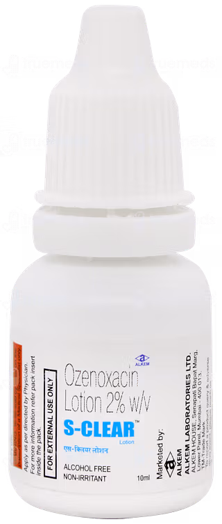 S-Clear Lotion belongs to the quinolone group of antimicrobials. It penetrates bacterial cells and blocks enzymes needed for DNA replication, thereby halting bacterial growth and preventing further spread of infection.
