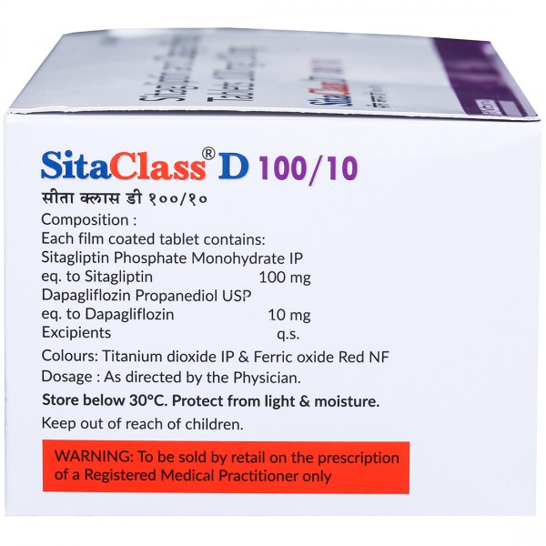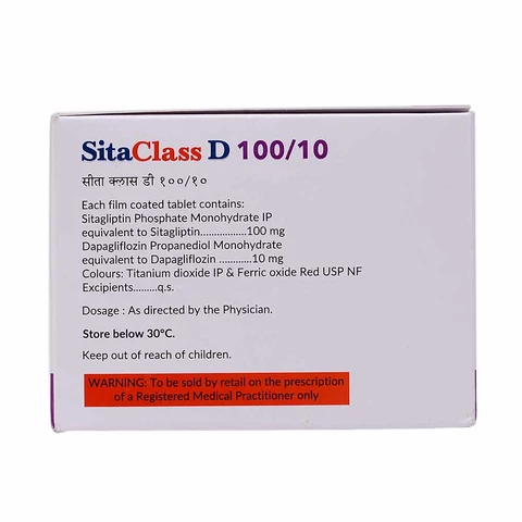 Sitaclass D 10mg/100mg Tablet is an effective antidiabetic medicine used in the management of type two diabetes mellitus. It combines Sitagliptin, a DPP-4 inhibitor, and Metformin, a biguanide, to help control blood sugar levels in adults. This dual-action formula works by increasing insulin release, reducing glucose production in the liver, and improving the body’s response to insulin. Sitaclass D Tablet is generally prescribed when diet and exercise alone are not enough to control blood sugar or when a single antidiabetic medicine does not provide desired results. By maintaining healthy glucose levels, it not only improves daily energy and metabolism but also prevents long-term complications such as kidney damage, nerve problems, vision issues, and heart disease. When used along with a proper diet, regular exercise, and healthy lifestyle changes, Sitaclass D 10mg/100mg Tablet helps patients achieve better diabetes control and improves overall quality of life.