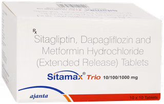 Sitamax Trio 10mg/1000mg/100mg Tablet is a combination drug used in the treatment of type 2 diabetes mellitus. It works by helping the body lower and maintain optimal blood sugar levels. This medicine supports the body’s insulin function, enhances glucose removal through urine, and reduces sugar production by the liver, contributing to better glycemic control when combined with a healthy diet and physical activity.