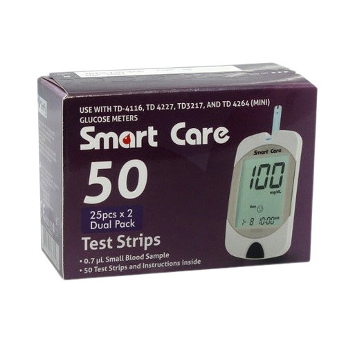 Smart Care Blood Glucose Test Strips | Pack of 50 (25×2)