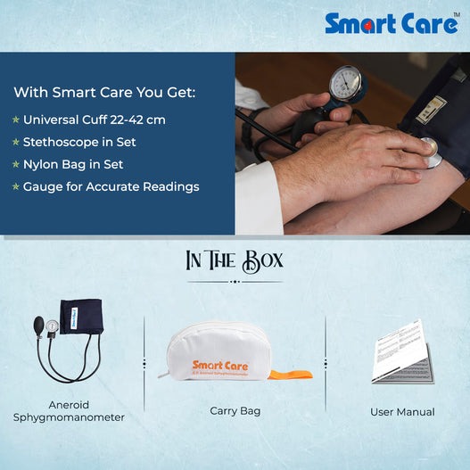 SMARTCARE Aneroid Sphygmomanometer SCH 200A | Durable Blood Pressure Monitor with Latex-Free Rubber Bulb | Mercury-Free Measurement | Nylon Fabric Cuff | Large Easy-to-Read Dial | Pack of 1