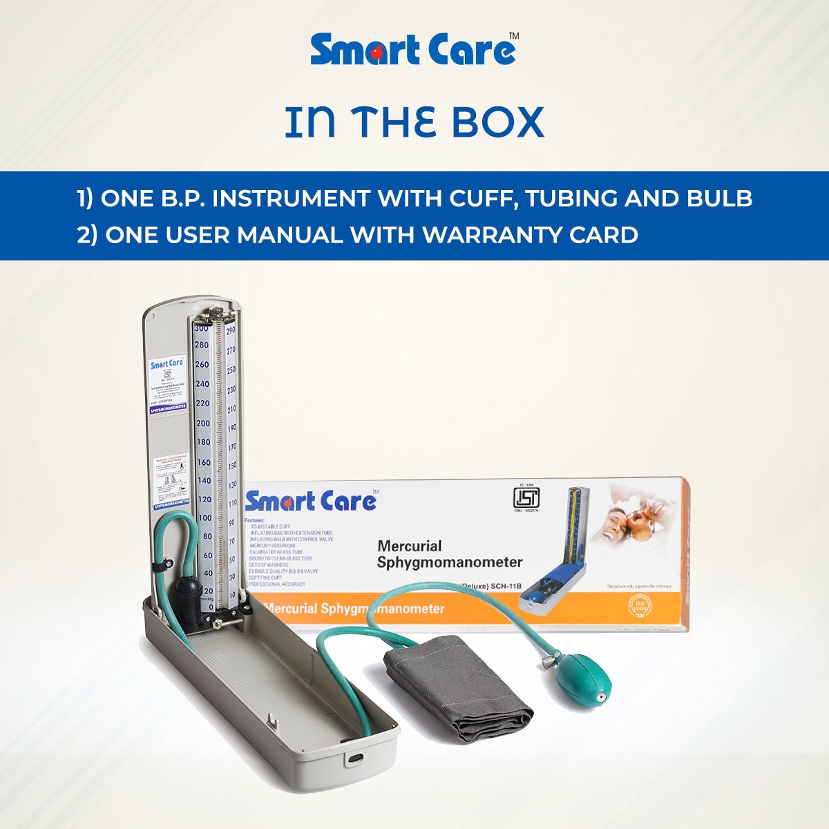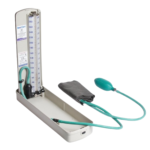 The Smartcare Mercury Blood Pressure Monitor (Blue) is a reliable and precise manual sphygmomanometer designed for professional and home use. Featuring a durable glass tube with a 3 mm inner diameter, this device ensures consistent and accurate blood pressure readings. The standard cotton cuff without a D-ring offers a comfortable fit for adult patients, while the 2-tube bladder design ensures even pressure distribution.