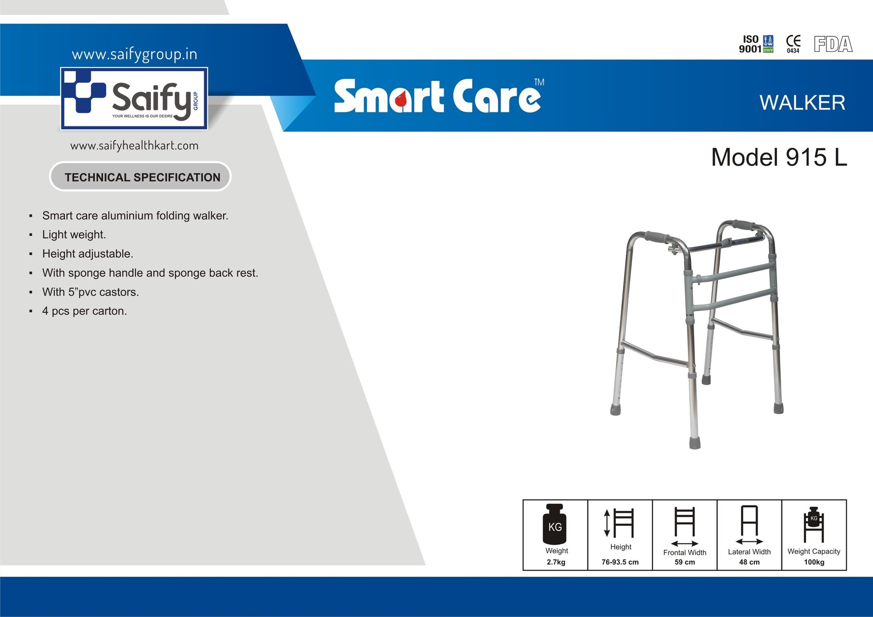 The Smartcare Walker SC 915 is a premium-quality mobility aid designed for adults who require walking support with maximum comfort and ease. Crafted from lightweight yet durable aluminium, this walker ensures long-lasting performance while remaining portable and easy to handle.