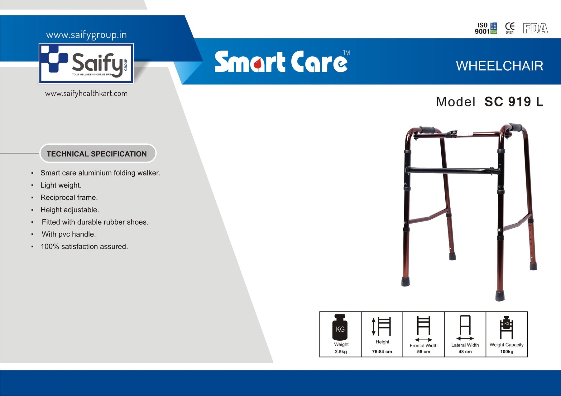 The Smartcare Walker SC 919 Copper is a premium mobility aid designed to provide stability, safety, and independence to adults and seniors with mobility challenges. Built from lightweight yet sturdy aluminium, this walker combines durability with effortless portability.