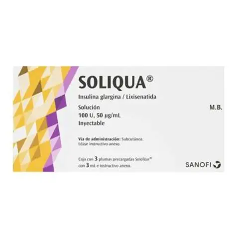 Soliqua Solostar is a combination therapy that includes man-made insulin to regulate high blood sugar. It replaces the insulin naturally produced by the body, allowing glucose to enter the cells for energy. Additionally, it encourages insulin release when blood sugar is elevated, while reducing glucose production by the liver. Controlling blood sugar levels helps lower the risk of complications such as kidney disease, vision problems, nerve damage, and limb loss. Regular use, alongside diet and exercise, supports a healthy, active lifestyle.