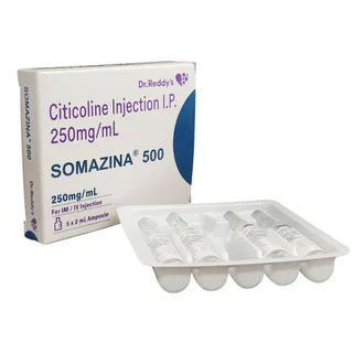 Somazina 500mg Injection has nerve-protective properties. It helps produce brain chemicals like phosphatidylcholine and acetylcholine, which are essential for cell repair, memory, and communication between nerve cells. It also lowers the accumulation of harmful fatty acids at injury sites in the brain, thus promoting healing and protection of neurons.